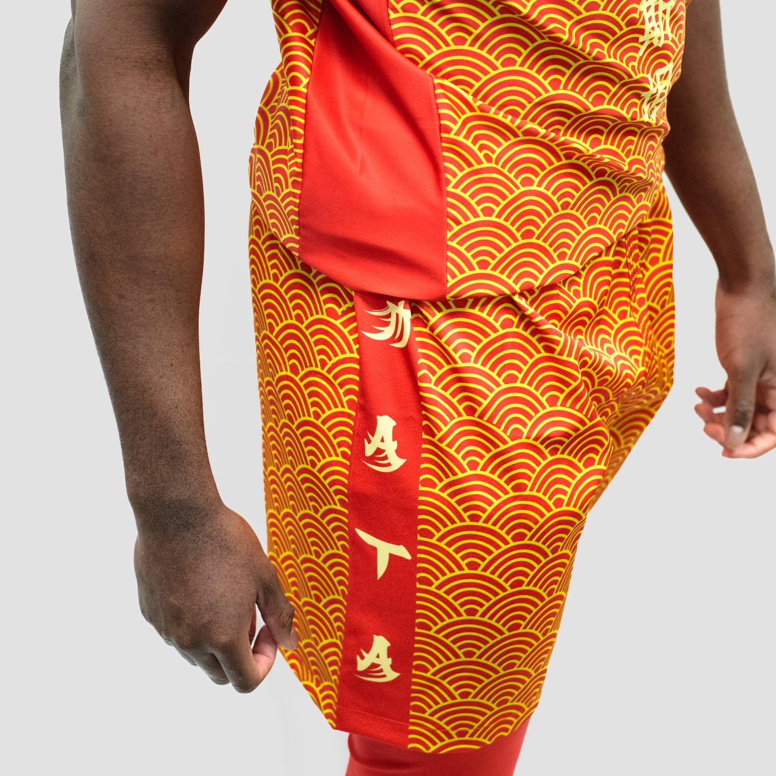 Ensemble grappling / MMA édition Nouvel An Chinois, conçu pour les pratiquants de no‑gi, JJB, lutte et sports de combatRashguard compressif haute performance avec bande anti-dérapante, short de combat ultra‑résistant, coutures renforcées et tissu 4‑way stretch
