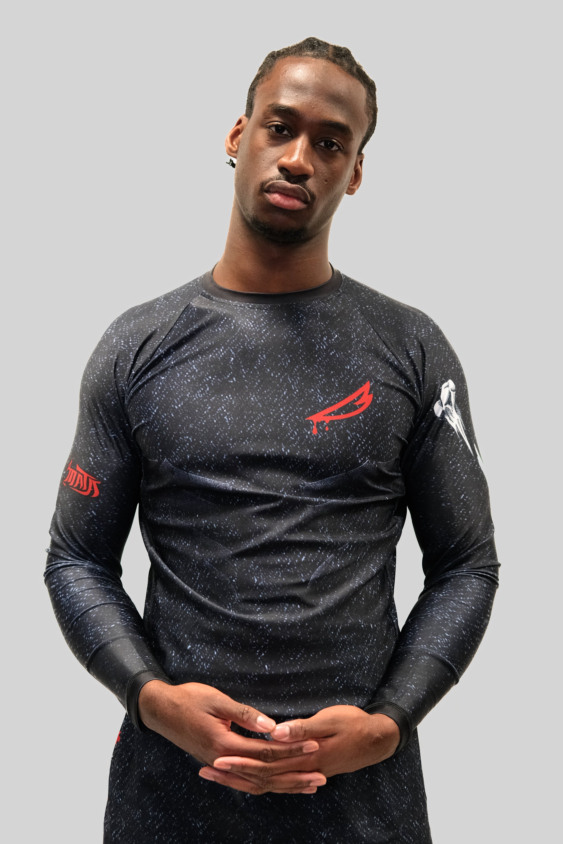 Né de la collaboration exclusive avec Reynald Desplains, le rashguard J’arrache Poto incarne la précision froide du combattant qui impose son rythme et ne laisse aucune ouverture.